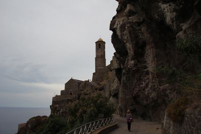 The cathedral's position on the Mediterranean coastline combines religious architecture with direct views of the sea from its elevated location.