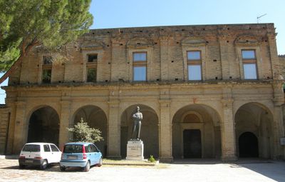 A bronze statue of painter Francesco Paolo Michetti, created by his student Nicola D'Antino, has stood at the entrance since 1938. The sculpture commemorates Michetti's artistic legacy at this location.