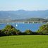 Lago di Bilancino is an artificial lake near Barberino di Mugello in Tuscany that stretches across several square kilometers. The shoreline alternates between small stony beaches and forested sections, with various water sports facilities distributed around its edges.