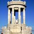 The war memorial in Ancona features a circular structure with eight Doric columns of white Istrian stone arranged around a central altar. Two broad staircases form the main approach to this elevated platform overlooking the Adriatic.