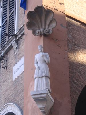 La Bonissima is a limestone and marble statue positioned at the corner of Palazzo Comunale, overlooking the central square. Standing at about 137 centimeters tall, the figure rises distinctly into the medieval city center.