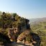 Monte Adone rises to 654 meters above sea level, featuring sandstone formations and Mediterranean vegetation including holm oaks and Mediterranean buckthorn.
