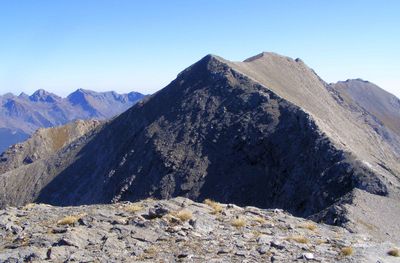 A saddle at 2,863 meters connects Monte Politri to Fea Nera peak, while another at 2,880 meters links to Truc Cialabrie mountain.