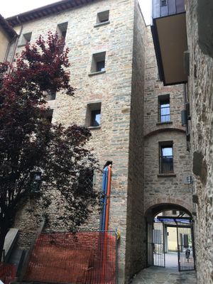 The Monastero delle Murate spans multiple buildings with stone walls, arched corridors, and inner courtyards within Florence's historic center.