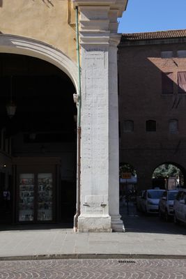 The Padimetro consists of a white marble slab embedded along the full height of a column supporting the portico of Palazzo Ducale.
