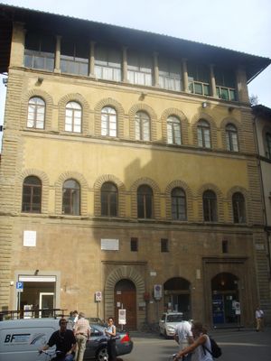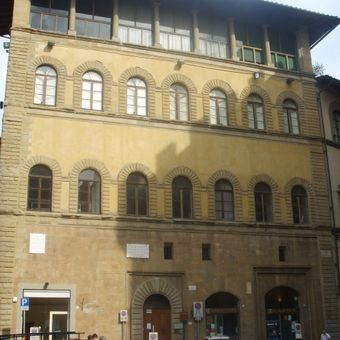 Two commemorative plaques on the facade honor both Ludovico Ariosto's stay with Zanobi Buondelmonti and the foundation of the Vieusseux literary cabinet.