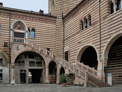 After the earthquake of 1117, the Commune constructed this building as one of the first public palaces in Italy, serving as Verona's town hall.