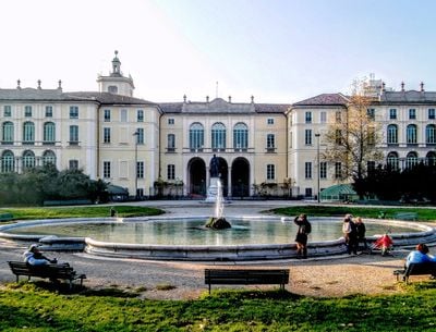 Located at Via Manin 2, the palazzo faces the western edge of Giardini Indro Montanelli and opens for exhibitions throughout the year.