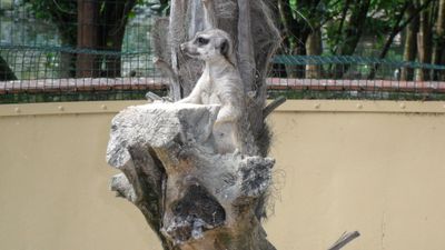 The zoological garden spans 40,000 square meters and contains hundreds of animal species including monkeys, ostriches, kangaroos, ungulates, and birds of prey.