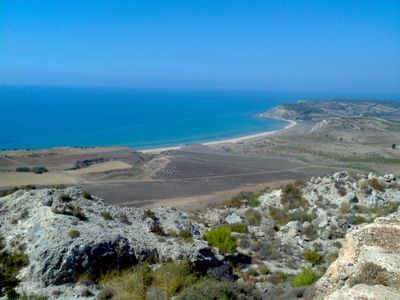 The reserve extends along the Mediterranean coast with white limestone cliffs, golden beaches, and Mediterranean vegetation covering 761 hectares of land.
