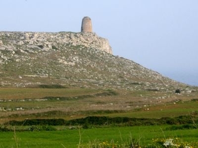 The Torre Sant'Emiliano stands tall on the Adriatic coast near Otranto, featuring solid stone walls and strategic observation points overlooking the sea.