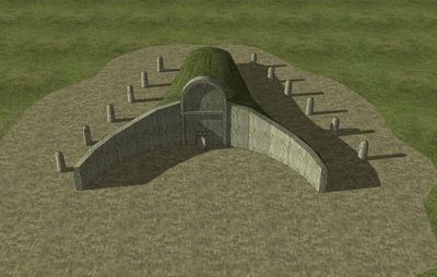 The Tombe dei Giganti di Goronna features a 25-meter-long burial chamber with a central stele and a semicircle of standing stones at its entrance.