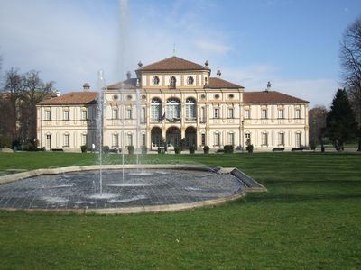 The villa stands within Parco della Tesoriera, featuring architectural elements of the early 18th century with a central core and two symmetrical wings.