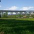 The viaduct combines two transportation modes with a road section extending 768 meters and a railway track running 858 meters across 34 arches.