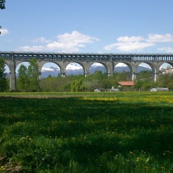 The Soleri Viaduct spans 800 meters across the Stura di Demonte valley, connecting Cuneo to the left bank of the river at a height of 47.5 meters.
