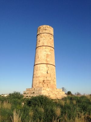 Colonna Pizzuta is a circular stone structure standing about 10.5 meters tall, built from large blocks and located near the ruins of ancient Heloros. It sits within the archaeological area of Eloro near Calamosche on southern Sicily's coast.