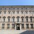 The palazzo stretches around three courtyards with a symmetrical main facade inspired by Rome's Palazzo Farnese, featuring brick decorations across four levels.