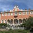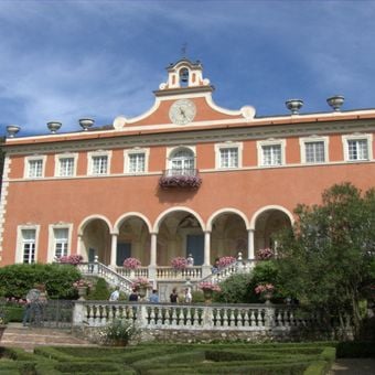 Villa Malaspina stands at the foot of hills near Sarzana, featuring a three-story structure with a foundation that incorporates fortress-like elements at its base.