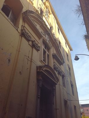 A spire dedicated to the Immaculate Conception, created by architect Giuseppe Astarita, was relocated from the conservatory courtyard to Via Ugo Falcone.