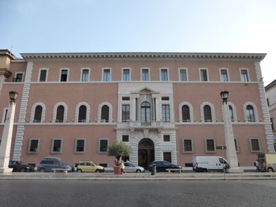The palace served as the final residence of painter Raphael until his death in 1520, marked by a commemorative marble inscription on its facade.