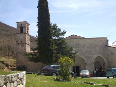 Visitors can reach the abbey by following the main road through Lucoli, with parking spaces available near the religious complex.