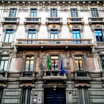 Located at Via Ariosto 21, the structure maintains its original features, including ornate balconies on the first and third floors.