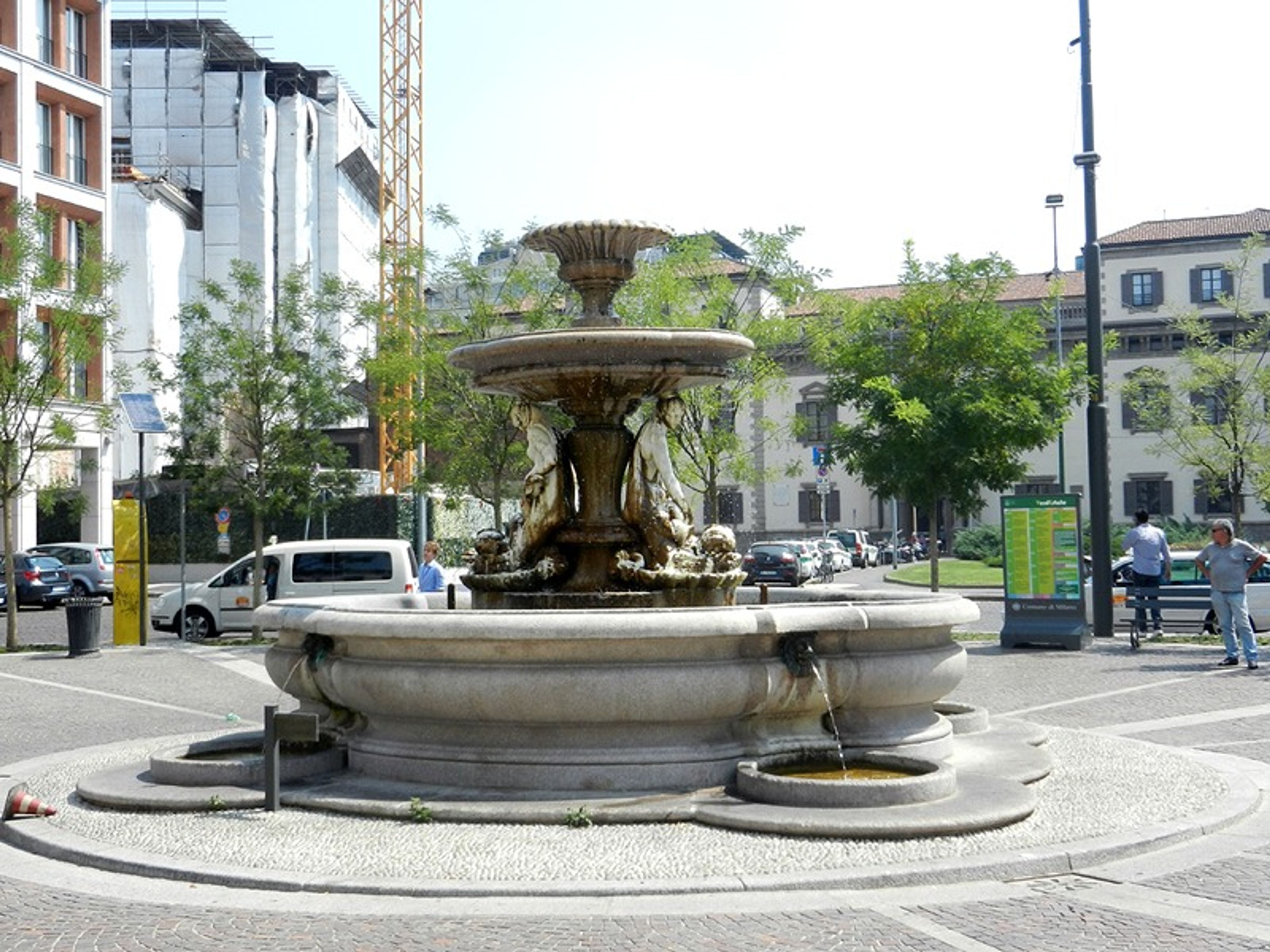 The fountain stands as the first public water feature in Milan, incorporating both decorative mermaids and practical water distribution functions.