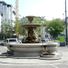 The fountain features two sirens sculpted in Carrara marble riding dragons, rising from the main basin while supporting additional water basins.