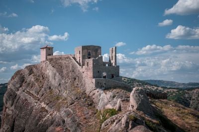 The castle's position at coordinates 40.607693, 15.939102 provides visitors with views extending across multiple valleys of the Basilicata region.
