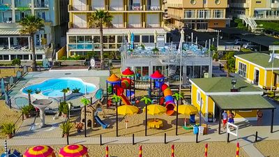 The beach hosts daily entertainment programs with traditional Romagnole activities, including local food tastings and regional dance performances.