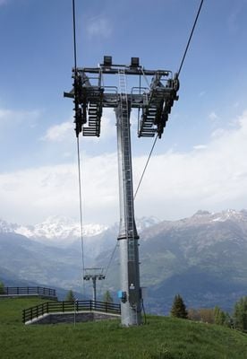 The cable car system was first built in 1957 to improve access between Aosta and the mountain region above. A major upgrade in 2008 replaced the equipment with modern technology.