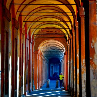 The Portico di San Luca extends for 3.8 kilometers through 666 arches, connecting Bologna city center to the Sanctuary of Madonna di San Luca.