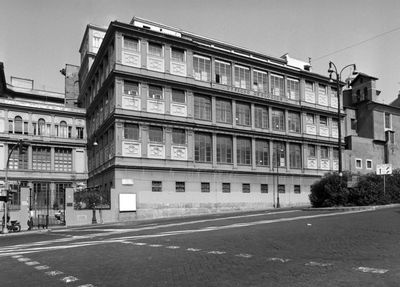 The five-story Palazzo Canevari features cast iron pillars supporting exhibition spaces and a gallery overlooking a consultation room.