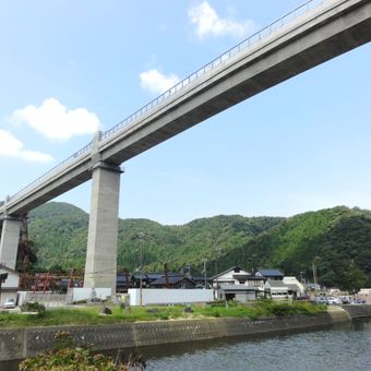 The Amarube Viaduct is a railway bridge in Kami, Japan, stretching 310 meters between two mountains and built from reinforced concrete. The structure stands 41 meters above the valley floor and carries rail traffic along the Hyōgo coastline.