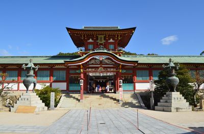 The Hofu Tenmangu Shrine, established in 904, stands as the first among 12,000 Tenjin shrines in Japan, featuring the oldest stone torii in Yamaguchi Prefecture.