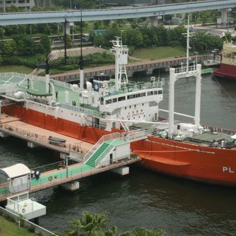 JCG Sōya is a preserved icebreaker moored permanently at Aomi Kita Port Park on Tokyo Bay. The vessel, 83.3 meters long, displays original equipment and cabins from decades of service at sea.