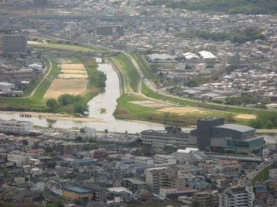 Kashiwara is a city in Osaka Prefecture that spreads between the Yamato River and the Ikoma Mountains. The city area includes residential districts, fields, and hills where several old burial mounds from earlier times stand and shape the terrain.