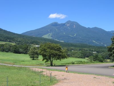 The mountain base contains multiple skiing facilities, including Akakura, Suginohara, and Ikenotaira resorts, connected by transportation networks.