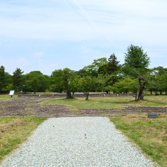 The ruins are reachable on foot from Kokufu-Tagajō Station, with blue directional signs marking the route through the archaeological grounds. Access is possible year-round, though earthen paths can become slippery after rain.