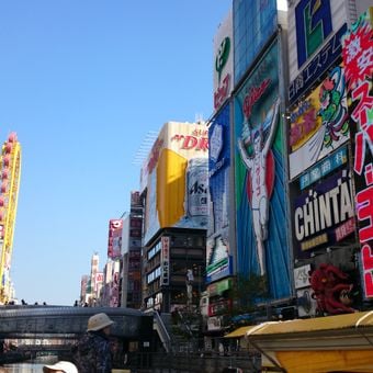 The district represents the food culture of Osaka through numerous restaurants serving local specialties like okonomiyaki, takoyaki, and various seafood preparations.