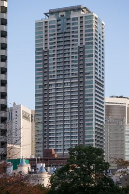 Located in central Tokyo, the tower provides immediate access to public transportation networks and contains multiple amenities including a library and resident lounges.