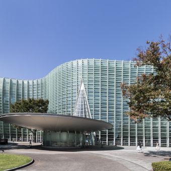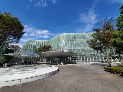 The National Art Center is an art museum in Roppongi with an undulating glass facade that houses Japan's largest exhibition space across several floors. The halls inside are bright and open, with high ceilings and wide corridors that give visitors plenty of room to view the rotating displays.