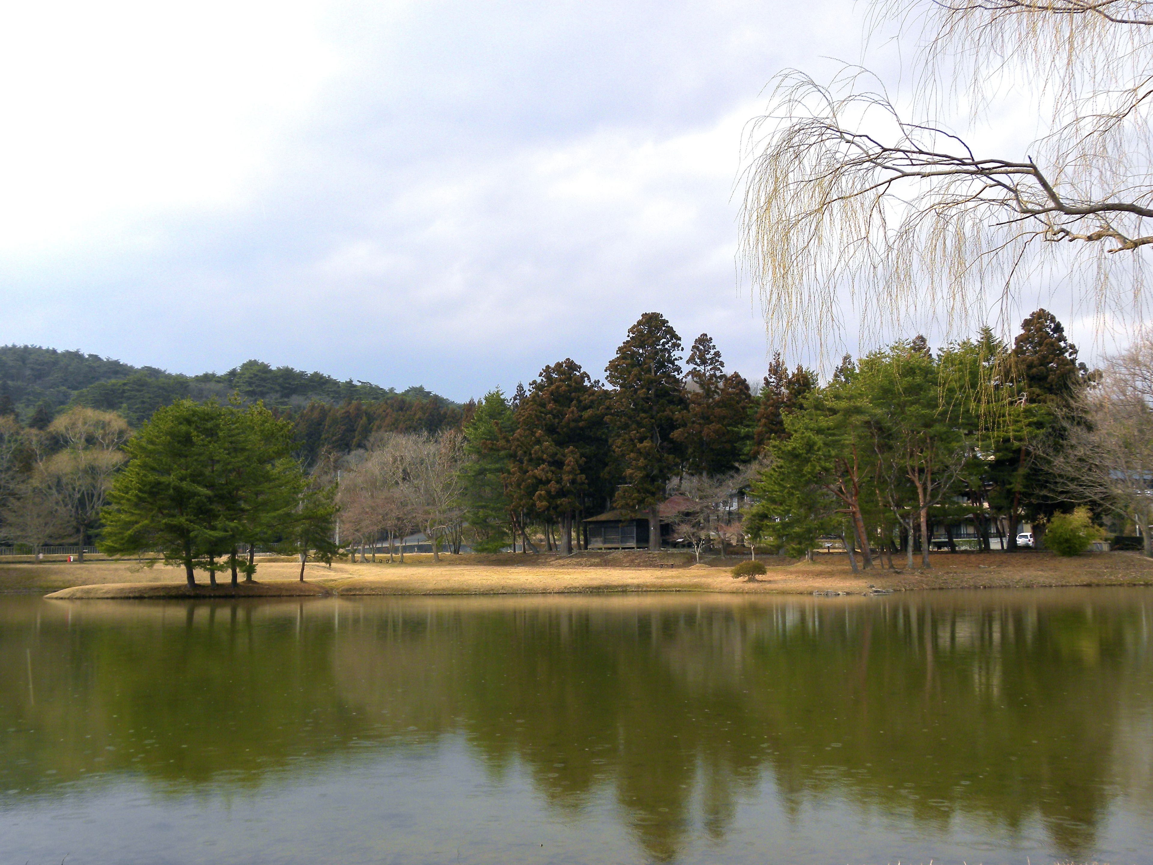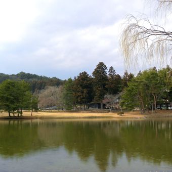 The archaeological site contains a restored Jodo garden centered around Maizurugaike Pond, positioned in front of the former Amidado structures.