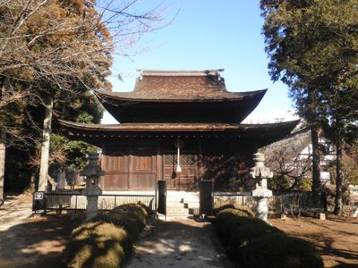 Seihaku-ji is a Buddhist temple in Yamanashi Prefecture with a main hall displaying classical architectural design from the early 15th century. The Butsuden hall features a three-by-three bay structure with subsidiary pavilions representing the religious architecture of that period.