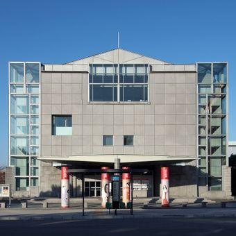 The National Museum of Modern Art is an art museum in Okazaki Park within the Sakyō-ku district of Kyoto, specializing in modern Japanese works. The 1986 building by Fumihiko Maki sits amid greenery and combines clean geometric forms with large window surfaces.