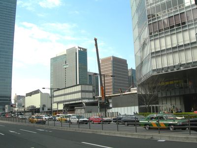 The Yaesu district extends between Tokyo Station and the neighborhoods of Nihonbashi and Kyobashi, featuring modern high-rise buildings and corporate offices.