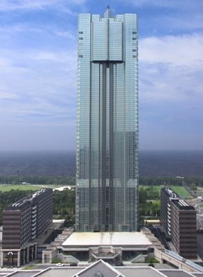 The building rises 180 meters with 49 floors above ground and 2 basement levels, offering views across Tokyo Bay and the surrounding Chiba area.