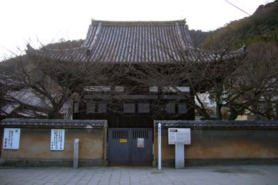 The temple features a main hall with traditional Zen architecture, wooden structures, and gardens integrating natural elements of the surrounding landscape.