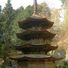 Anraku-ji is a Buddhist temple in Bessho Onsen featuring an octagonal three-story pagoda that stands approximately 19 meters tall. The structure represents a rare architectural style found among Japanese temples and is surrounded by pathways and gardens.