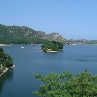 Mount Kumgang is a mountain region in Kangwon Province featuring granite peaks, numerous waterfalls, and scenic lakes distributed across a large area. The site was developed as a tourist complex with facilities and attractions for visitors.
